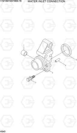 WATER INLET CONNECTION погрузчика дизельного Hyundai 110/130/140/160D-7E со списком деталей и комплектацией. Каждую деталь можно приобрести в наличии и под заказ с дотавкой по всей России