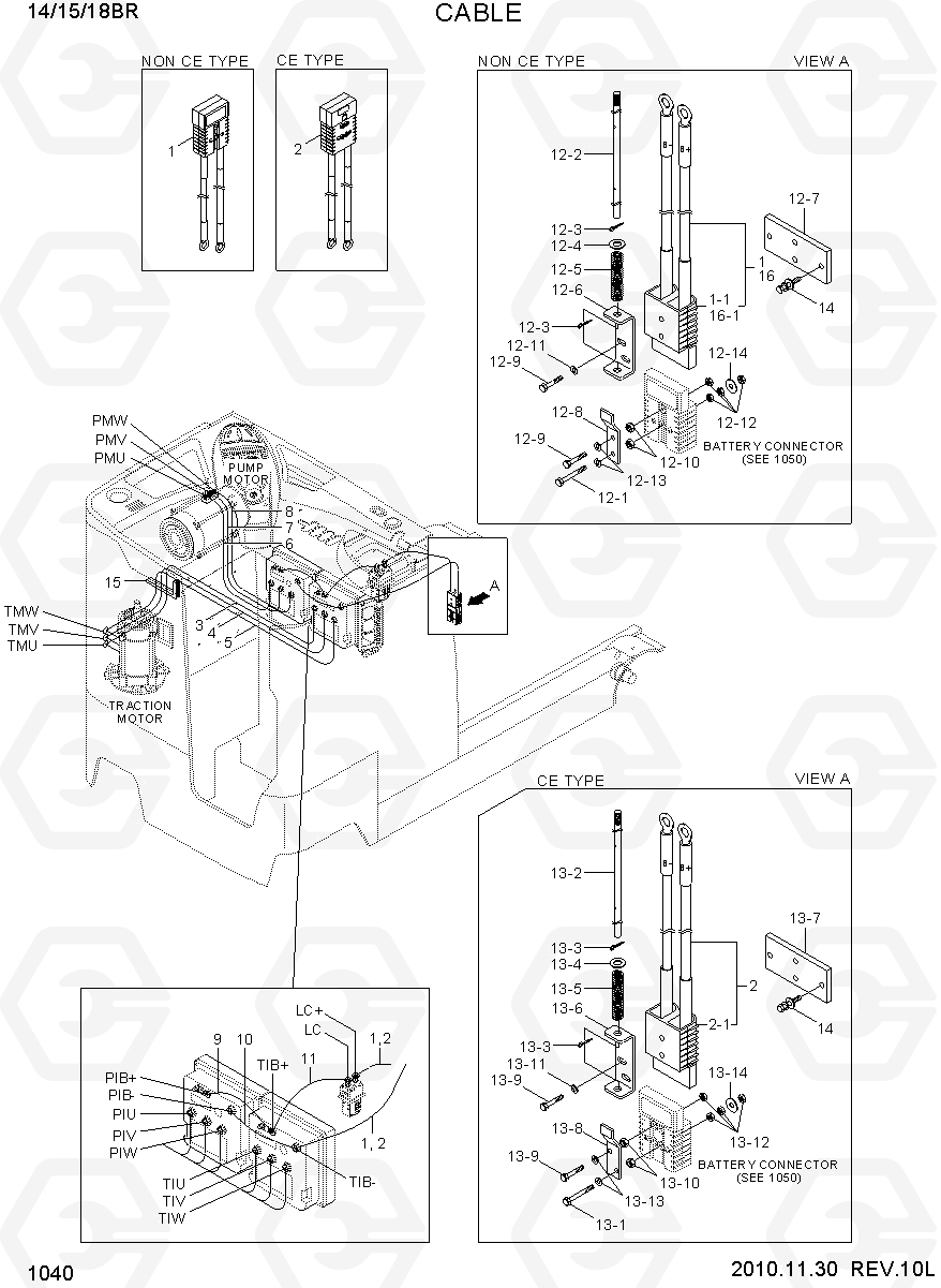 CABLE погрузчика электрического Hyundai 14/15/18BR-7 со списком деталей и комплектацией. Каждую деталь можно приобрести в наличии и под заказ с дотавкой по всей России