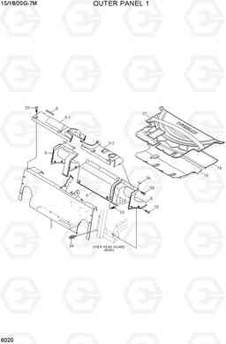 OUTER PANEL 1 погрузчика на сжиженном газе Hyundai 15G/18G/20G-7M со списком деталей и комплектацией. Каждую деталь можно приобрести в наличии и под заказ с дотавкой по всей России