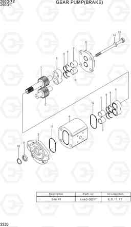 Пилотный (шестерёнчатый) насос для тормозов погрузчика дизельного Hyundai 250D-7E со списком деталей и комплектацией. Каждую деталь можно приобрести в наличии и под заказ с дотавкой по всей России