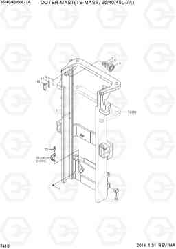 OUTER MAST (TS-MAST,35/40/45L-7A) погрузчика на сжиженном газе Hyundai 35/40/45/50L-7A со списком деталей и комплектацией. Каждую деталь можно приобрести в наличии и под заказ с дотавкой по всей России