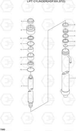 Гидроцилиндр (цилиндр) подъемный (HDF30II,STD) погрузчика дизельного Hyundai HDF20/25/30II со списком деталей и комплектацией. Каждую деталь можно приобрести в наличии и под заказ с дотавкой по всей России
