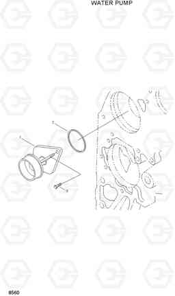 Водяной насос фронтального погрузчика колесного Hyundai HL730TM-3(#1001-) со списком деталей и комплектацией. Каждую деталь можно приобрести в наличии и под заказ с дотавкой по всей России