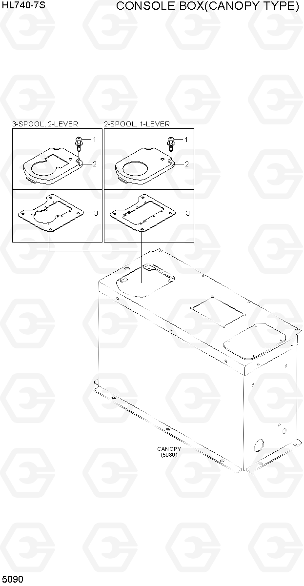 CONSOLE BOX(CANOPY TYPE) фронтального погрузчика колесного Hyundai HL740-7S со списком деталей и комплектацией. Каждую деталь можно приобрести в наличии и под заказ с дотавкой по всей России