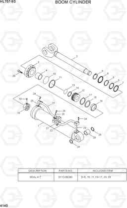 Гидроцилиндр стрелы фронтального погрузчика колесного Hyundai HL757-9S(BRAZIL) со списком деталей и комплектацией. Каждую деталь можно приобрести в наличии и под заказ с дотавкой по всей России