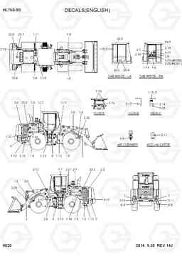 DECALS(ENGLISH) фронтального погрузчика колесного Hyundai HL760-9S со списком деталей и комплектацией. Каждую деталь можно приобрести в наличии и под заказ с дотавкой по всей России
