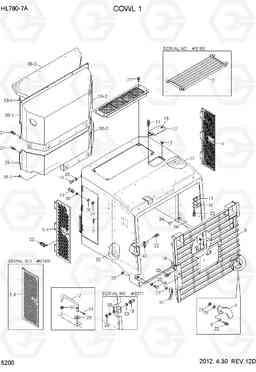 COWL 1 фронтального погрузчика колесного Hyundai HL780-7A со списком деталей и комплектацией. Каждую деталь можно приобрести в наличии и под заказ с дотавкой по всей России