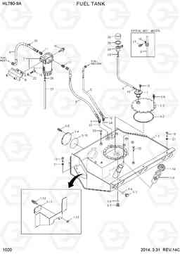 Топливный бак (бензобак) фронтального погрузчика колесного Hyundai HL780-9A со списком деталей и комплектацией. Каждую деталь можно приобрести в наличии и под заказ с дотавкой по всей России