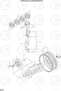 Поршень и коленвал погрузчика на сжиженном газе Hyundai HLF20/25/30-5 со списком деталей и комплектацией. Каждую деталь можно приобрести в наличии и под заказ с дотавкой по всей России