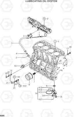 Система масляной смазки минипогрузчика колесного Hyundai HSL810 со списком деталей и комплектацией. Каждую деталь можно приобрести в наличии и под заказ с дотавкой по всей России