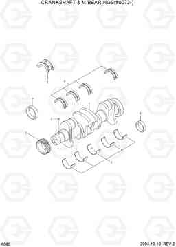 Коленчатый вал (коленвал) и коренной подшипник (#0072-) экскаватора колесного Hyundai R140W-7 со списком деталей и комплектацией. Каждую деталь можно приобрести в наличии и под заказ с дотавкой по всей России
