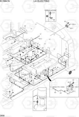 LH ELECTRIC экскаватора колесного Hyundai R170W-7A со списком деталей и комплектацией. Каждую деталь можно приобрести в наличии и под заказ с дотавкой по всей России