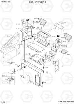 CAB INTERIOR 3 экскаватора гусеничного Hyundai R180LC-9S со списком деталей и комплектацией. Каждую деталь можно приобрести в наличии и под заказ с дотавкой по всей России