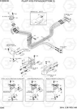 PILOT HYD PIPING(BOTTOM 2) экскаватора колесного Hyundai R180W-9S со списком деталей и комплектацией. Каждую деталь можно приобрести в наличии и под заказ с дотавкой по всей России