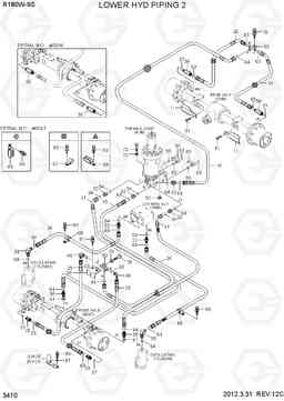 LOWER HYD PIPING 2 экскаватора колесного Hyundai R180W-9S со списком деталей и комплектацией. Каждую деталь можно приобрести в наличии и под заказ с дотавкой по всей России