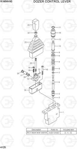 Рычаг управления отвалом экскаватора колесного Hyundai R180W-9S со списком деталей и комплектацией. Каждую деталь можно приобрести в наличии и под заказ с дотавкой по всей России