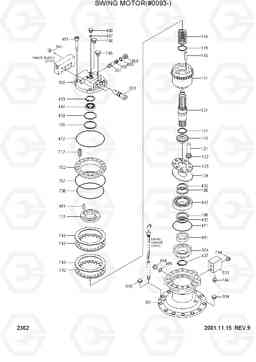 Поворотный редуктор (Гидромотор поворота платформы, #0093-) экскаватора колесного Hyundai R200W-3 со списком деталей и комплектацией. Каждую деталь можно приобрести в наличии и под заказ с дотавкой по всей России