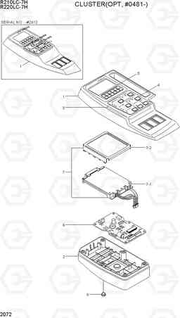 CLUSTER(OPT, #0481-) экскаватора гусеничного Hyundai R210/220LC-7H со списком деталей и комплектацией. Каждую деталь можно приобрести в наличии и под заказ с дотавкой по всей России