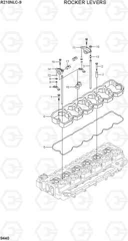 Коромысло клапанов экскаватора гусеничного Hyundai R210NLC-9 со списком деталей и комплектацией. Каждую деталь можно приобрести в наличии и под заказ с дотавкой по всей России