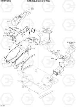 CONSOLE BOX 3(RH) экскаватора колесного Hyundai R210W9-MH со списком деталей и комплектацией. Каждую деталь можно приобрести в наличии и под заказ с дотавкой по всей России