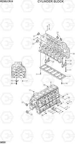 Блок цилиндров экскаватора гусеничного Hyundai R235LCR-9 со списком деталей и комплектацией. Каждую деталь можно приобрести в наличии и под заказ с дотавкой по всей России