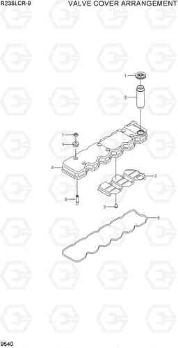 VALVE COVER ARRANGEMENT экскаватора гусеничного Hyundai R235LCR-9 со списком деталей и комплектацией. Каждую деталь можно приобрести в наличии и под заказ с дотавкой по всей России