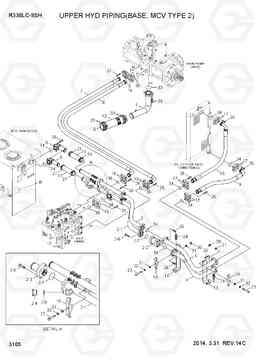 UPPER HYD PIPING(BASE, MCV TYPE 2) экскаватора гусеничного Hyundai R330LC-9SH со списком деталей и комплектацией. Каждую деталь можно приобрести в наличии и под заказ с дотавкой по всей России