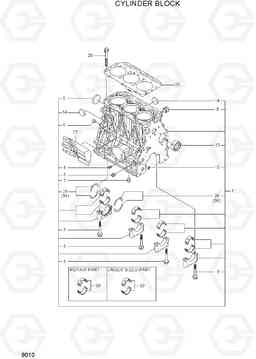 Блок цилиндров экскаватора гусеничного Hyundai R35Z-7A со списком деталей и комплектацией. Каждую деталь можно приобрести в наличии и под заказ с дотавкой по всей России