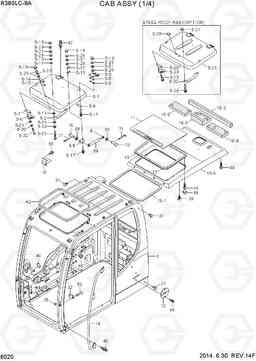 CAB ASSY(1/4) экскаватора гусеничного Hyundai R380LC-9A со списком деталей и комплектацией. Каждую деталь можно приобрести в наличии и под заказ с дотавкой по всей России