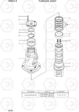 Шарнир поворотный экскаватора гусеничного Hyundai R390LC-9(INDIA) со списком деталей и комплектацией. Каждую деталь можно приобрести в наличии и под заказ с дотавкой по всей России