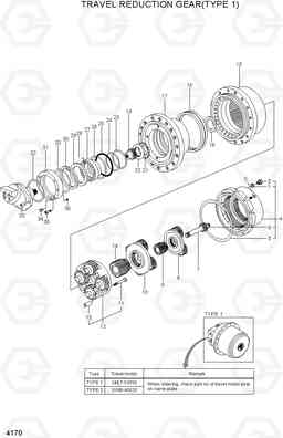 Редуктор хода (Тип 1) экскаватора гусеничного Hyundai R450LC-7 со списком деталей и комплектацией. Каждую деталь можно приобрести в наличии и под заказ с дотавкой по всей России