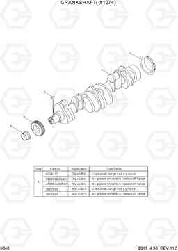 Коленчатый вал (коленвал, -#1274) экскаватора гусеничного Hyundai R450LC-7 со списком деталей и комплектацией. Каждую деталь можно приобрести в наличии и под заказ с дотавкой по всей России