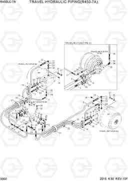 TRAVEL HYDRAULIC PIPING(R450-7A) экскаватора гусеничного Hyundai R450LC-7A со списком деталей и комплектацией. Каждую деталь можно приобрести в наличии и под заказ с дотавкой по всей России