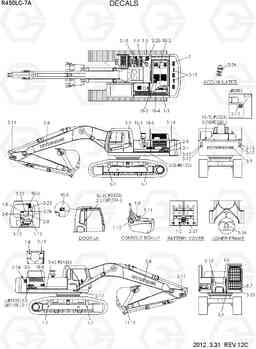 DECALS экскаватора гусеничного Hyundai R450LC-7A со списком деталей и комплектацией. Каждую деталь можно приобрести в наличии и под заказ с дотавкой по всей России