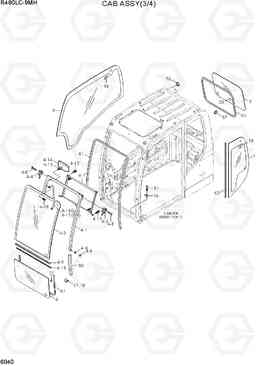 CAB ASSY(3/4) экскаватора гусеничного Hyundai R480LC-9MH со списком деталей и комплектацией. Каждую деталь можно приобрести в наличии и под заказ с дотавкой по всей России