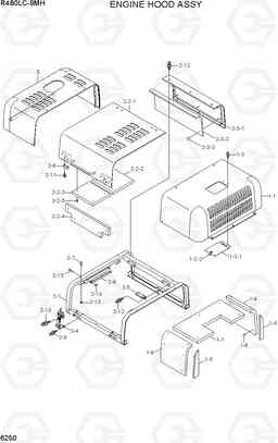 Капот двигателя в сборе экскаватора гусеничного Hyundai R480LC-9MH со списком деталей и комплектацией. Каждую деталь можно приобрести в наличии и под заказ с дотавкой по всей России