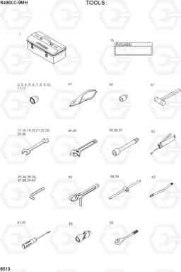 Инструменты для ремонта экскаватора гусеничного Hyundai R480LC-9MH со списком деталей и комплектацией. Каждую деталь можно приобрести в наличии и под заказ с дотавкой по всей России