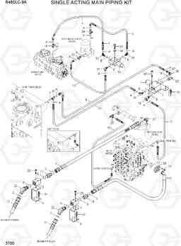 SINGLE ACTING MAIN PIPING KIT экскаватора гусеничного Hyundai R480LC-9A со списком деталей и комплектацией. Каждую деталь можно приобрести в наличии и под заказ с дотавкой по всей России