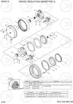 Редуктор хода (Тип 3) экскаватора гусеничного Hyundai R520LC-9 со списком деталей и комплектацией. Каждую деталь можно приобрести в наличии и под заказ с дотавкой по всей России