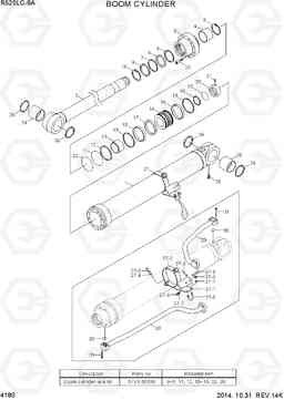 Гидроцилиндр стрелы экскаватора гусеничного Hyundai R520LC-9A со списком деталей и комплектацией. Каждую деталь можно приобрести в наличии и под заказ с дотавкой по всей России