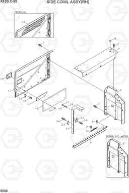 SIDE COWL ASSY(RH) экскаватора гусеничного Hyundai R520LC-9S со списком деталей и комплектацией. Каждую деталь можно приобрести в наличии и под заказ с дотавкой по всей России