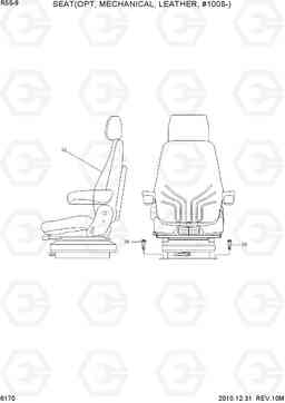 SEAT(OPT, MECHANICAL, LEATHER, #1008-) экскаватора гусеничного Hyundai R55-9 со списком деталей и комплектацией. Каждую деталь можно приобрести в наличии и под заказ с дотавкой по всей России