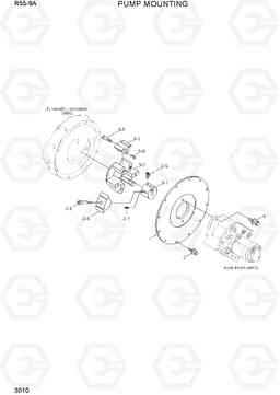 Установка насоса экскаватора гусеничного Hyundai R55-9A со списком деталей и комплектацией. Каждую деталь можно приобрести в наличии и под заказ с дотавкой по всей России