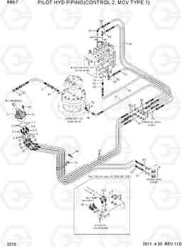 PILOT HYD PIPING(CONTROL 2, MCV TYPE 1) экскаватора гусеничного Hyundai R80-7 со списком деталей и комплектацией. Каждую деталь можно приобрести в наличии и под заказ с дотавкой по всей России