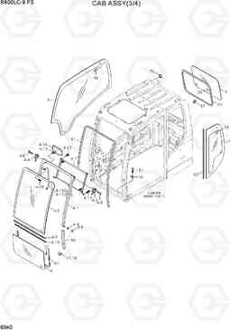 CAB ASSY(3/4) экскаватора гусеничного Hyundai R800LC-9 FS со списком деталей и комплектацией. Каждую деталь можно приобрести в наличии и под заказ с дотавкой по всей России