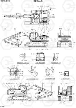 DECALS экскаватора гусеничного Hyundai R220LC-9S(BRAZIL) со списком деталей и комплектацией. Каждую деталь можно приобрести в наличии и под заказ с дотавкой по всей России