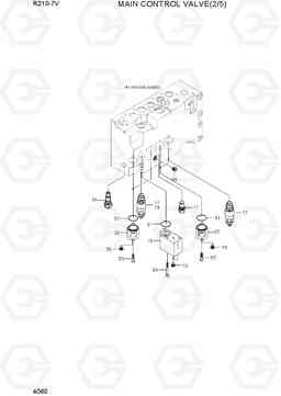 Гидрораспределитель (главный управляющий клапан) (2/5) экскаватора гусеничного Hyundai R210-7V(INDIA) со списком деталей и комплектацией. Каждую деталь можно приобрести в наличии и под заказ с дотавкой по всей России