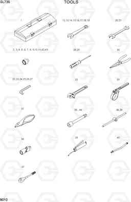 Инструменты для ремонта фронтального погрузчика колесного Hyundai SL735 со списком деталей и комплектацией. Каждую деталь можно приобрести в наличии и под заказ с дотавкой по всей России