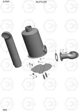 MUFFLER фронтального погрузчика колесного Hyundai SL763S со списком деталей и комплектацией. Каждую деталь можно приобрести в наличии и под заказ с дотавкой по всей России