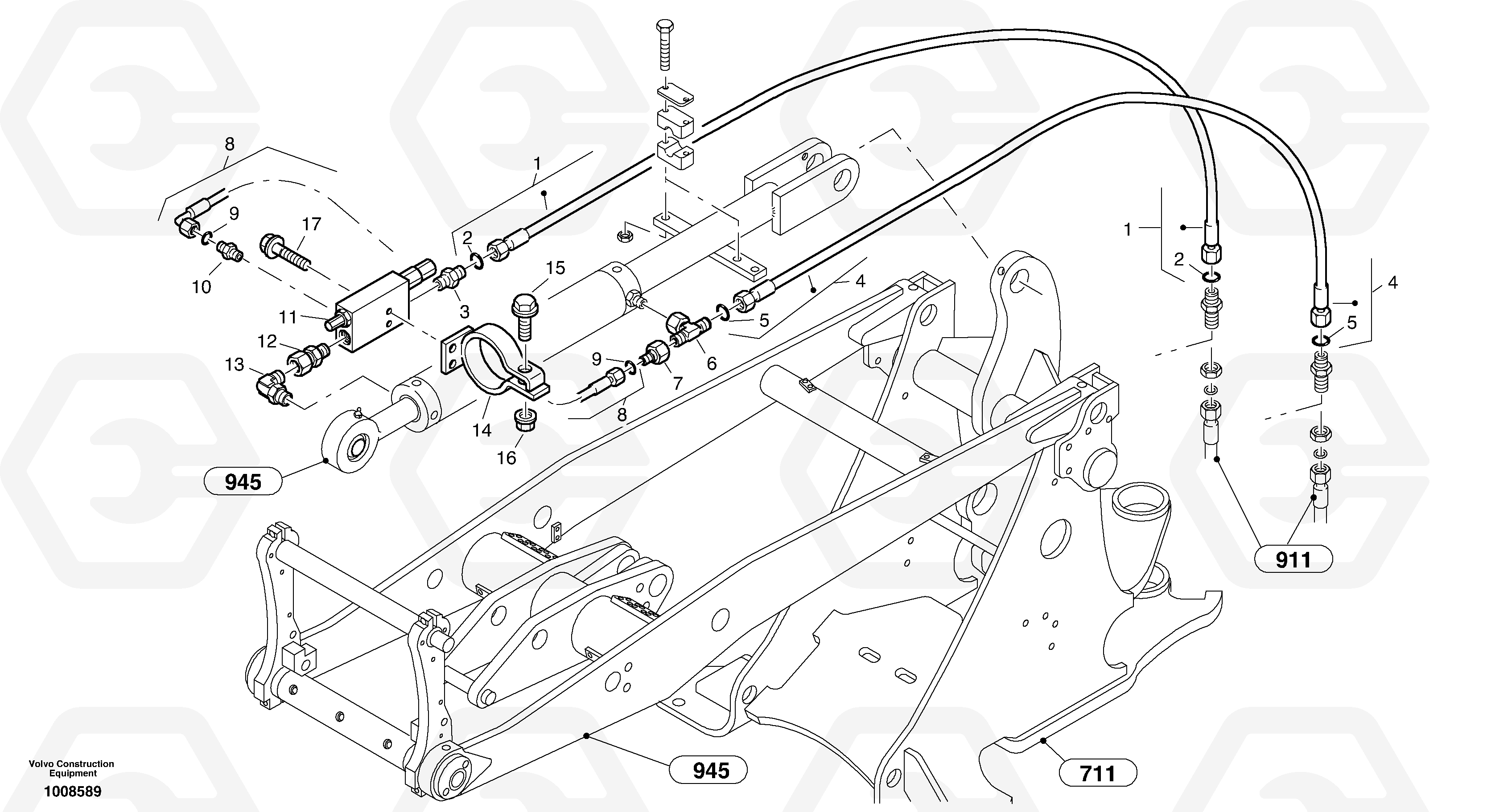 Line fracture safety - Tilt фронтального погрузчика (колесного) Volvo Construction Equipment L25B TYPE 175, S/N 0500 - TYPE 176, S/N 0001 - со списком деталей и комплектацией. Каждую деталь можно приобрести в наличии и под заказ с дотавкой по всей России